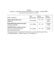 График прямых телефонных линий Полесский лесхоз октябрь-декабрь 2025 года Опубликовано29.10.2025Авторpoles_admin