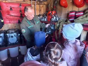 Школьники познакомились с боевым противопожарным арсеналом лесничества, а также узнали, зачем «опахивают» лес.