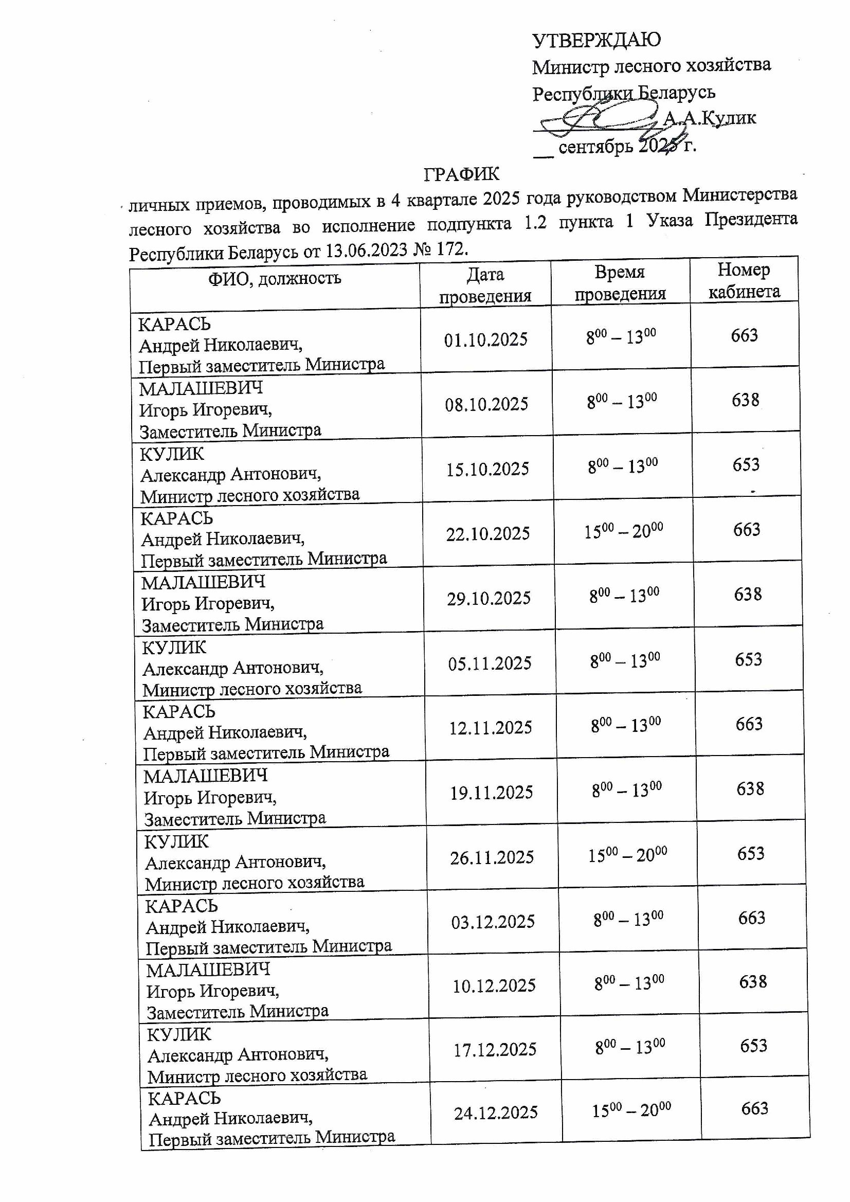 Генеральный директор 8-0162-593595 Демидко Александр Сергеевич  7 2-я среда месяца  8.00-13.00